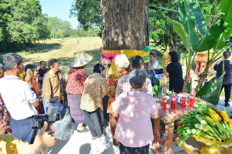 ที่บ้านหนองแสง หมู่ที่ 5 ตำบลหนองแสง อำเภอปากพลี จังหวัดนครนายก ชาวบ้านกว่า 30 คนได้นำสิ่งของ เช่นผ้าสามสี ทองคำเปลว เสื้อผ้าชุดไทย และเครื่องบูชามากราบไหว้ เจ้าแม่ตะเคียนทองที่มีอากว่า 200 ปี มีความสูง กว่า 150 เมตร มีความกว้าง 4 คน โอบ ซึ่งชาวบ้านในหมู่บ้านหนองแสงและชาวบ้านใกล้เคียงต่างให้ความเคารพในความศักด์สิทธ์ มาบนบานสานกล่าว ขอใชคขอลาภ ซึ่งบางรายเคยได้รับโชคลาภก็นำสิ่งของมาแก้บน บางรายก็นำแป้งมาทาที่ต้นเจ้าแม่ตะเคียนเพื่อสิ่งดูเลขเด็ด บางรายก็เขย่าเซียมซีขอโชคลาภ ได้ตัวเลขกันไปต่างๆนาๆเนื่องจากเป็นวันใกล้หวยออก
