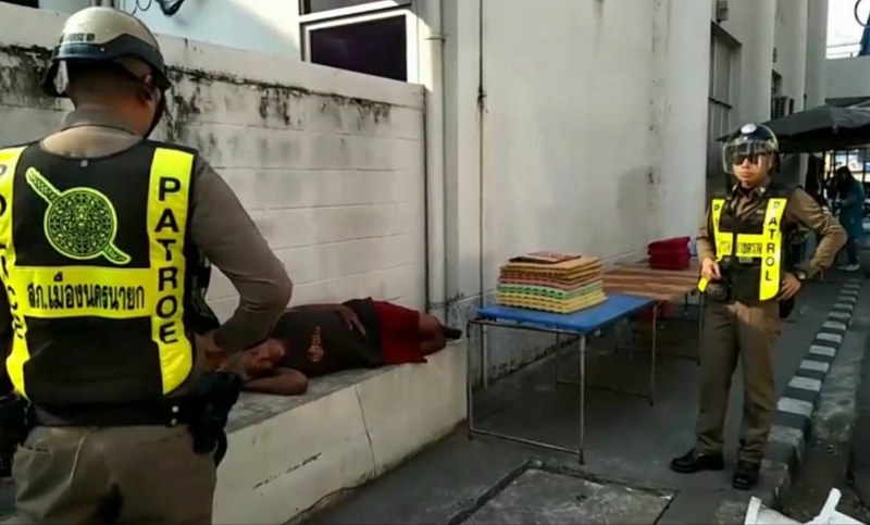 ที่ธนาคารกรุงเทพสาขานครนายก ได้รับแจ้งจากนายตุ้ม สมบุณย์สุข(ตุ้มตลับพระ) พ่อค้าขายตลับพระได้โทรแจ้งศูนย์วิทยุเมืองนายก ว่ามีชายเร่ร่อนชอบมายืนขอเงินลูกค้าที่มากดเงินที่ตู้เอทีเอ็มธนาคารกรุงเทพสาขานครนายก และยืนปัสสาวะ อุจาระ เลอะพื้นหน้าธนาคารเหม็นไปหมด สร้างความเดือดร้อนอยู่เป็นประจำ ศูนย์วิทยุเมืองนายก จึงได้ประสานสายตรวจรถจักรยานยนต์ ไปยังที่รับแจ้ง พบชายเร่ร่อนชื่อนายน้อย เป็นชายเร่ร่อน ที่โดนพ่อค้า -วินจักรยานยนต์-แม่บ้านธนาคาร ได้ไล่ออกไป และนายน้อยก็หลบไปนอนในซอกข้างธนาคาร เจ้าหน้าที่ตำรวจจึงไปเรียกให้ตื่น และคุมตัวให้ไปล้างตัวและให้นอนในสวนหลวง ร. 9 เทศบาลเมืองนครนายก
