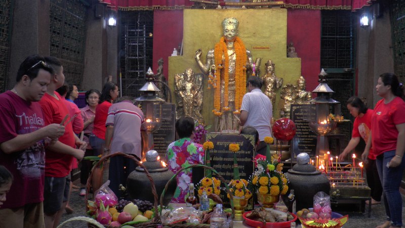 แต่ก็ชาวไทยสายจีน อีกจำนวนมากก็ยังสวมใส่เสื้อสีแดง แม้เครื่องเซ่นไหว้สักการะจะลดน้อยลงตามเศรษฐกิจที่ซบเซา เงียบเหงา ก็ยังมีความเชื่อ เพื่อความเป็นสิริมงคลของตนเองและครอบครัวที่ได้ไหว้สิ่งศักดิ์สิทธิ์ เทพยาดาฟ้าดินและบรรพบุรุษ ต่างจุดธูปอธิฐานขอพรเจ้าพ่อพระกาฬ ต่อสิ่งศักดิ์สิทธิ์ทั้งหลาย ให้ครอบครัวอยู่เย็นเป็นสุขการค้าขายดีมีความเจริญรุ่งเรือง และขอให้ประเทศชาติพ้นวิกฤตต่างๆ และสืบเนื่องจากพิษของเศรษฐกิจไม่ดีการเงินหายากข้าวของแพงขึ้น สิ่งของเซ่นไหว้ในปีแม้จะไม่ได้ปรับราคาเพิ่มขึ้น แต่ประชาชนชาวไทยเชื้อสายจีนต้องการประหยัดใช้ในสิ่งที่จำเป็นทำให้ต้องลดจำนวนเครื่องเซ่นไหว้ต่างๆน้อยลงกว่าปีที่ผ่านๆม