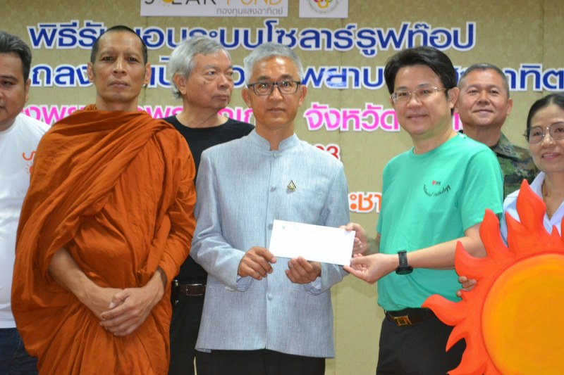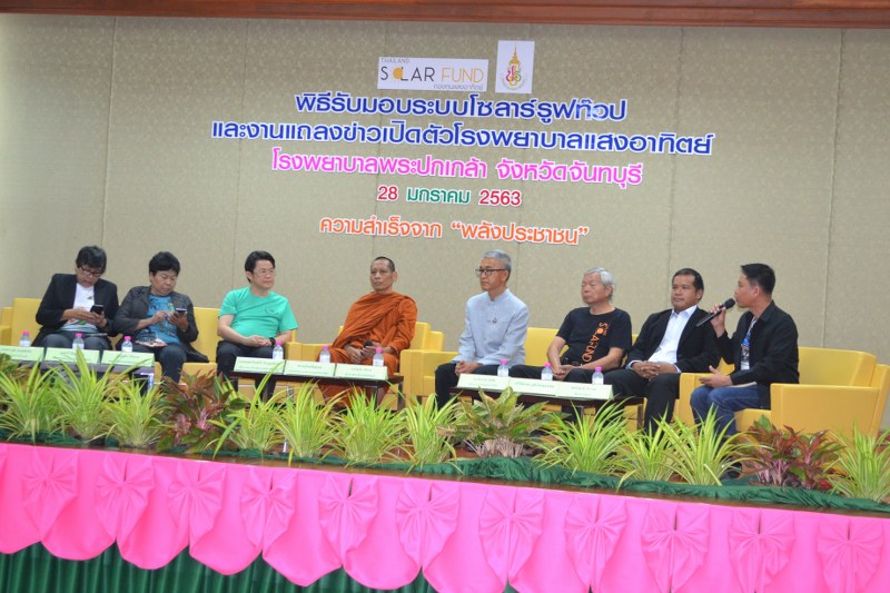 พระครูวิมลปัญญาคุณ เจ้าอาวาสวัดป่าศรีแสงธรรม จ.อุบลราชธานี ในฐานะประธานกองทุนแสงอาทิตย์ กล่าวว่า กองทุนแสงอาทิตย์ได้ดำเนินการเปิดรับบริจาคผ่านบัญชีชื่อ “กองทุนแสงอาทิตย์โดยมูลนิธิเพื่อผู้บริโภค” มาตั้งแต่เดือนพฤศจิกายน 2561 จนสามารถติดตั้งระบบผลิตไฟฟ้าด้วยพลังงานแสงอาทิตย์บนหลังคาอาคารของโรงพยาบาลแล้ว 7 แห่ง ซึ่งรวมโรงพยาบาลพระปกเกล้า จ.จันทบุรีแห่งนี้ด้วย