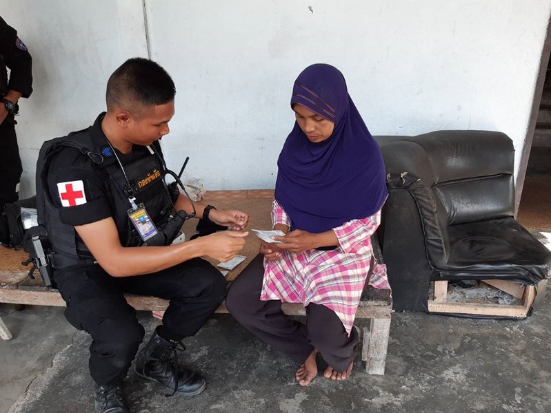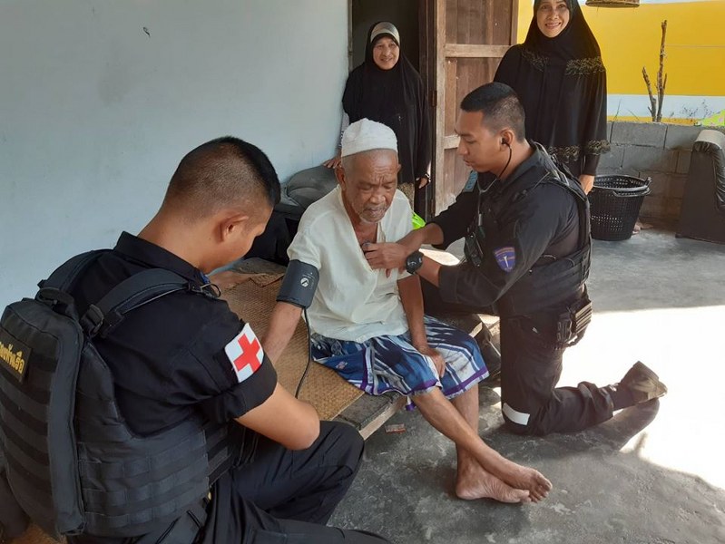 “เราจะอยู่ดูแลพี่น้องประชาชนทุกคน ทุกวัน ทุกที่ ๒๔ ชั่วโมง” เมื่อ ๒๗ ม.ค.๖๓ ฉก.ทพ. นย.ทร. โดย ชป.กร.ร้อย.ทพ.นย.๕ ฯ พร้อมกับ จนท.พยาบาล และ ผู้ช่วยผู้ใหญ่บ้าน ม.๒ เข้าพบปะพัฒนาสัมพันธ์ ผู้นำชุมชน และประชาชนในพื้นที่รับผิดชอบ บ.แป๊ะบุญ ม.๒ ต.บาเจาะ อ.บาเจาะ จว.นราธิวาส พร้อมทั้งตรวจรักษาโรคเบื้องต้น และจ่ายยาให้กับประชาชน เพื่อสร้างความสัมพันธ์อันดีต่อกัน ประชาชนขอบคุณ จนท.ทหาร ที่ได้ให้การดูแลเอาใจใส่ประชาชนเป็นอย่างดี
