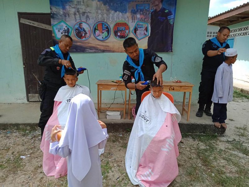 “ร่วมจัดกิจกรรม “เกศาสานใจ” ตัดผมให้กับเด็กนักเรียนในโรงเรียนตาดีกา”