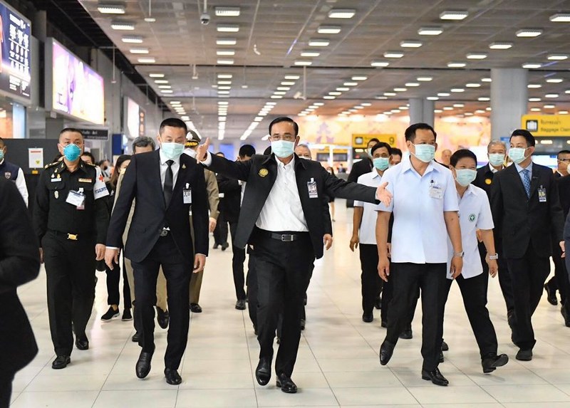 พลเอก ประยุทธ์ จันทร์โอชา นายกรัฐมนตรี ตรวจเยี่ยมการปฏิบัติงานด่านควบคุมโรคท่าอากาศยานสุวรรณภูมิ ย้ำมั่นใจมาตรการควบคุมโรคฯ ของไทย และขอบคุณการปฏิบัติหน้าที่เจ้าหน้าที่ทุกฝ่าย แนะประชาชนดูแลสุขภาพ