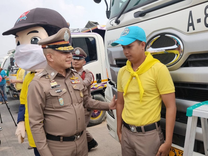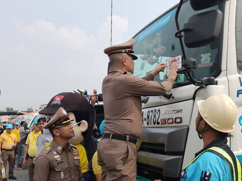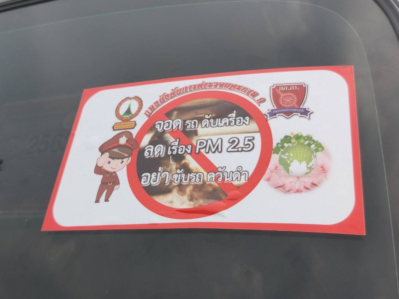 ผู้ช่วย ผบ.ตร.ลงพื้นที่แม็กโครบางบอน รณรงค์ติดสติ๊กเกอร์รถสาธารณะไม่ขับรถควันดำ