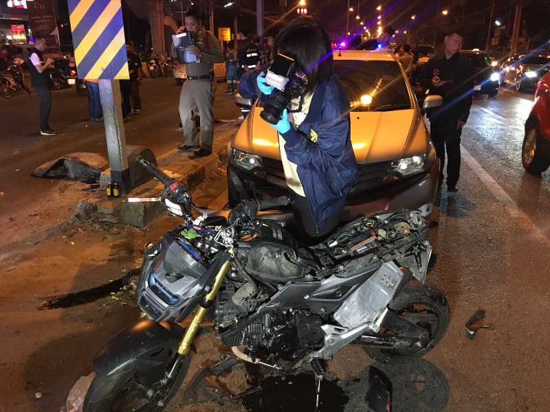 เมื่อเวลา 23.00 น. วันที่ 2 ก.พ. ร.ต.ท.ธนวัฒน์ ลีบาง รอง สว. (สอบสวน) สภ.ปากเกร็ด จ.นนทบุรี รับแจ้งเหตุรถชนกันมีผู้เสียชีวิตบริเวณแยกเมืองทองธานี ถนนติวานนท์ ต.บ้านใหม่ ไปสอบสวนพร้อมด้วยแพทย์สถาบันนนิติวิทยาศาสตร์และเจ้าหน้าที่กู้ภัยมูลนิธิป่อเต็กตึ๊ง รุดตรวจสอบ