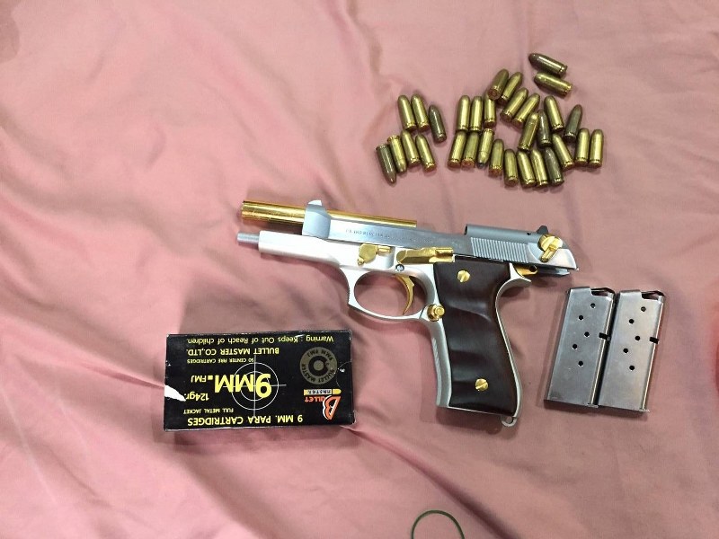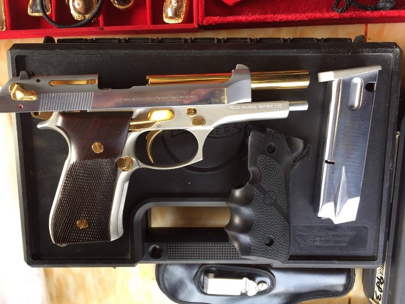 - อาวุธปืนพกสั้นกึ่งออโตเมติกยี่ห้อเบเรต้า (BERETTA) ขนาด 9 มม. สีเงิน-ทอง พร้อมด้วย เครื่องกระสุน 1 กระบอก