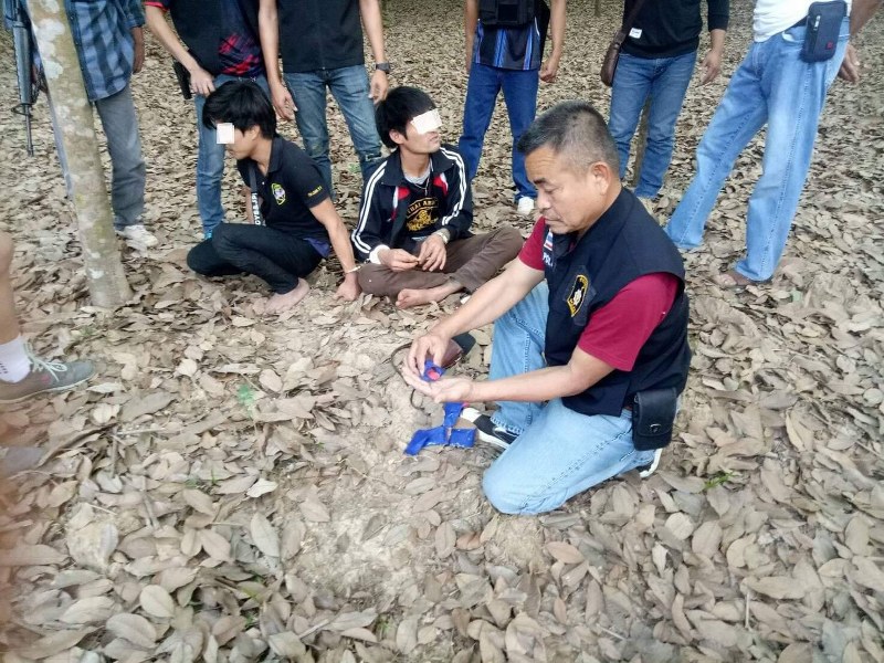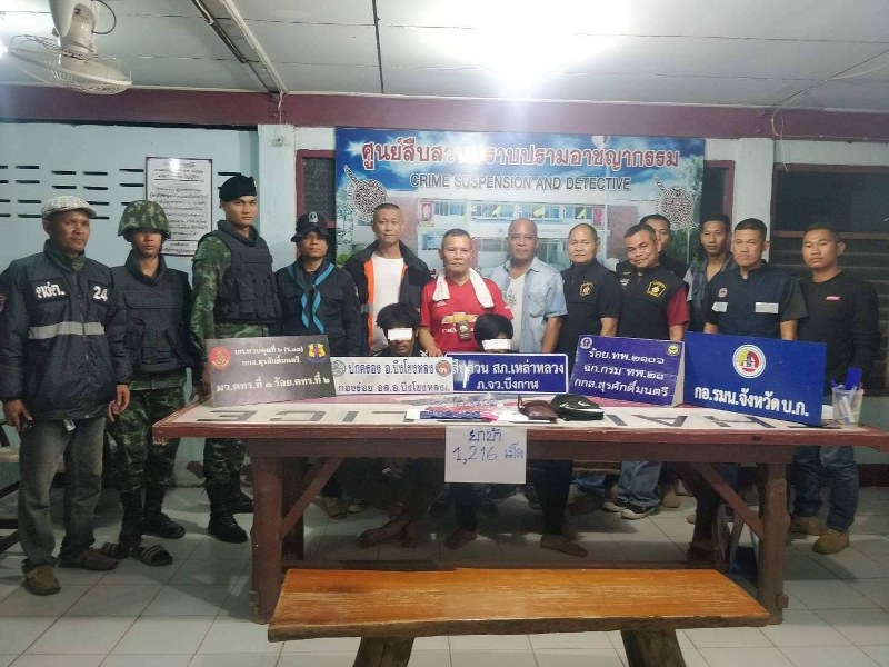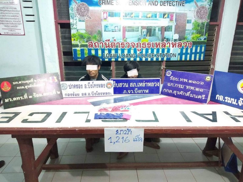 ครั้นเมื่อเวลา 17.00 น. ตรวจพบวัยรุ่นชาย 2 คน กำลังนั่งเสพยาบ้า ชายทั้ง 2 คน เมื่อเห็นเจ้าหน้าที่จึงได้วิ่งหลบหนีเข้าไปในสวนยางพาราข้างบ้าน แต่เจ้าหน้าที่ไล่ติดตามไป สามารถควบคุมตัวไว้ได้พร้อมของกลางยาบ้า จำนวน 7 ถุง (ถุงสีน้ำเงิน 6 ถุง, ถุงสีชมพู 1 ถุง สลักอัษร A) ซุกซ่อนในกระเป๋าสะพายข้าง จึงทำการจับกุมผู้กระทำผิดพร้อมของกลางมาตรวจนับที่ สภ.เหล่าหลวง ทราบชื่อคือ นายไกรแก้ว ศรีสะอาด อายุ 22 ปี บ้านเลขที่ 23 ม.7 บ.โนนสมบูรณ์ ต.ดงบัง อ.บึงโขงหลง จว. บึงกาฬ และ นายเกษม บุญโท อายุ 27 ปี บ้านเลขที่ 95 ม.3 บ.ไทยเจริญ ต.ท่าดอกคำ อ.บึงโขงหลง จว. บึงกาฬ