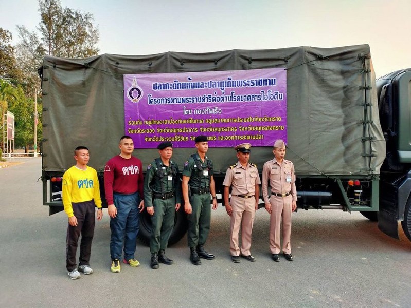 ปลากระตักแห้ง ปลาทูเค็ม และอา หารทะเลที่มีสารไอโอดีน จากกองทัพเรือ โดยทัพเรือภาคที่ 1 จังหวัดชลบุรี นำคณะเดินทางถึงภาคอิสาน ในพื้นที่ จ.สุรินทร์ และ จ.ขอนแก่น เรียบร้อยแล้ว ผู้แทนกองทัพเรือ จากทัพเรือภาคที่ 1 พร้อมน้อมเกล้าถวายฯ ตามโครงการพระราชดำริฯ โดยตำรวจตระเวนชายแดนดำเนินการรับพระราชทานฯ และแจกจ่ายให้นักเรียน ในโครงการฯ พื้นที่ภาคตะวันออกเฉียงเหนือต่อไป
