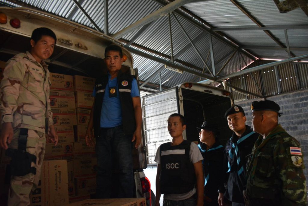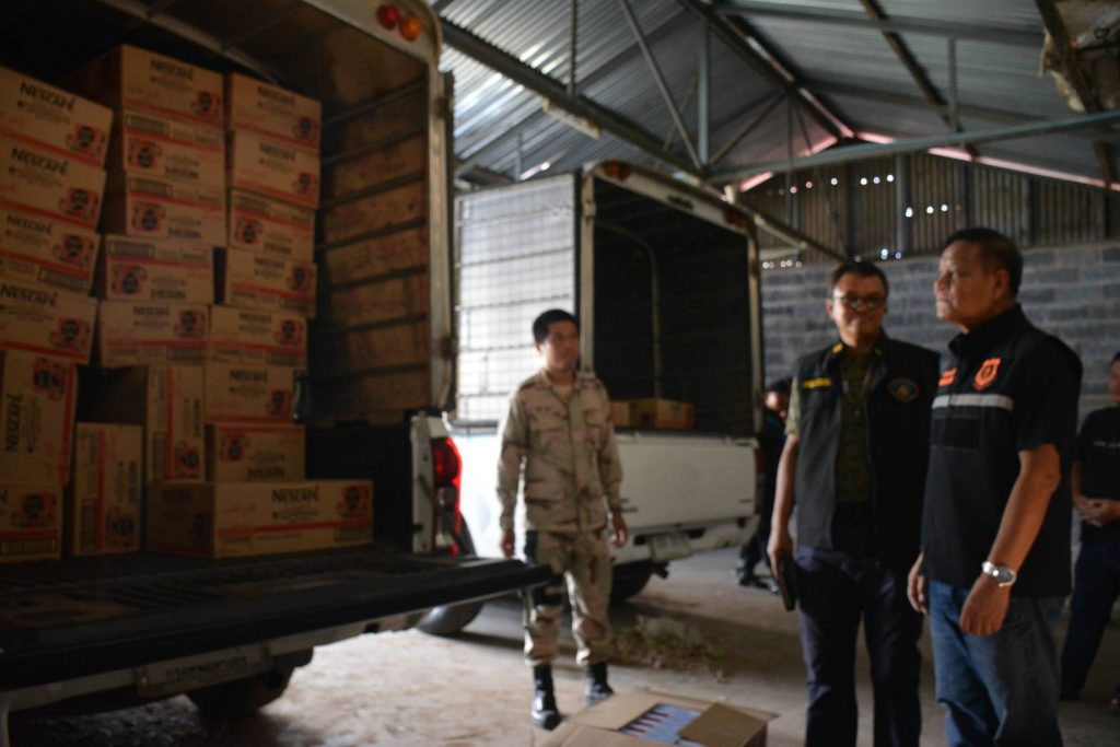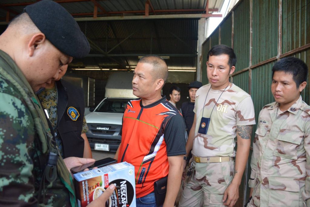 นำกำลังร่วมเข้าตรวจสอบโกดังดังกล่าวโดยจากการตรวจสอบภายในโกดัง พบรถยนต์กระบะ ยี่ห่อ Isusu สีขาวทะเบียน บม-3315 กำแพงเพชร บรรทุกกล่องกาแฟจำนวน 65 กล่อง และรถยนต์กระบะสีขาวยี่ห่อเดียวกัน ทะเบียน 1 ฒฮ-303 กรุงเทพฯ บรรทุกกาแฟบดละเอียด (3in1)ยี่ห่อดังจำนวน 27 กล่อง รวมจำนวน 94 กล่อง มีมูลค่ากว่า 1แสนบาท ซึ่งกาแฟคั่วบดละเอียดยี่ห่อดัง ดังกล่าวที่ได้รับการยกเว้นภาษีมูลค่าเพิ่มแล้ว