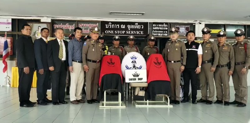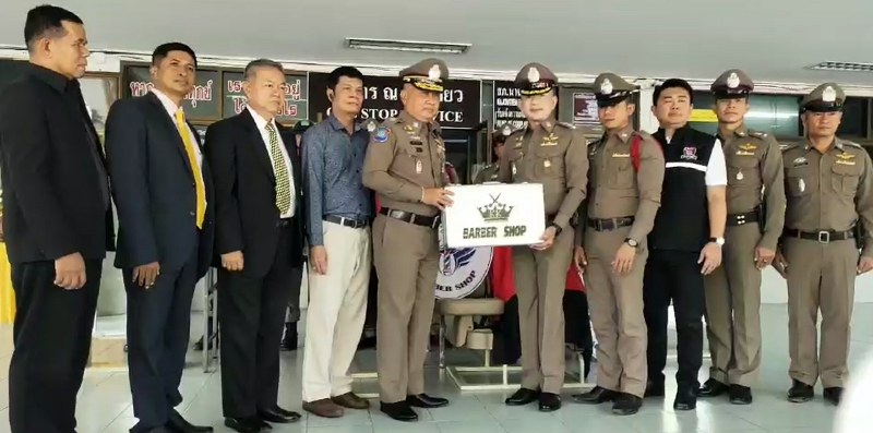 พล.ต.ต. อังกูล คล้ายคลึง รองผู้บัญชาการตำรวจท่องเที่ยวพร้อมคณะได้เดินทางมาส่งมอบ ห้องตัดผม KK BARBER พร้อมชุดเก้าอี้ ตัดผม แก่ สภ.นาจอมเทียนนโยบายของ พล.ต.อ.จักรทิพย์ ชัยจินดาผู้บัญชาการตำรวจแห่งชาติ