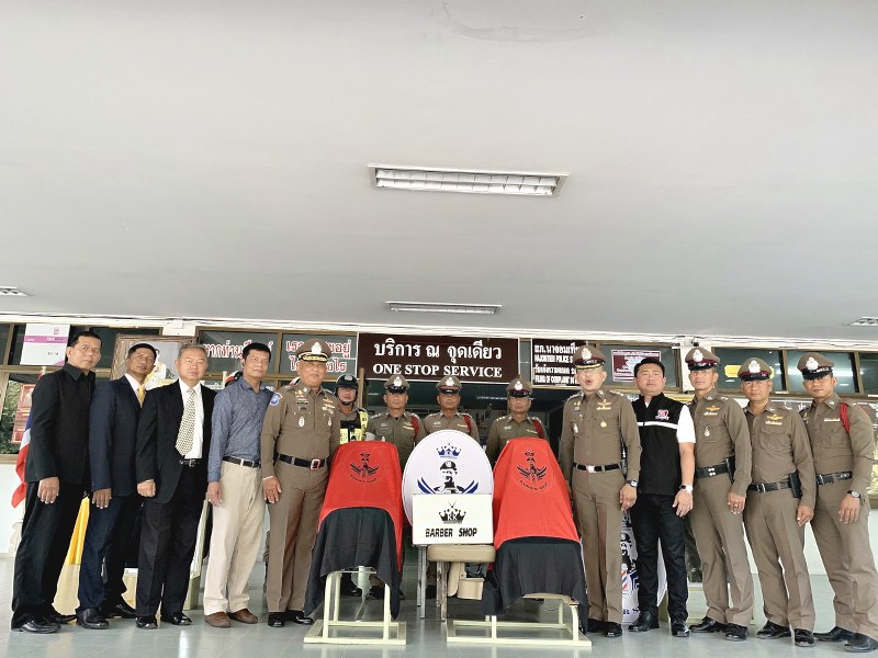 รองผู้บัญชาการตำรวจท่องเที่ยวมอบอุปกรณ์ตัดผมให้กับโรงพักนาจอมเทียน