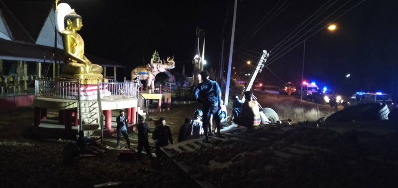 ลพบุรี ระทึกรถบรรทุกพ่วงเสียหลักหลุดโค้งกระแทกกำแพงวัดเจ็บติดคาซาก 2 ราย