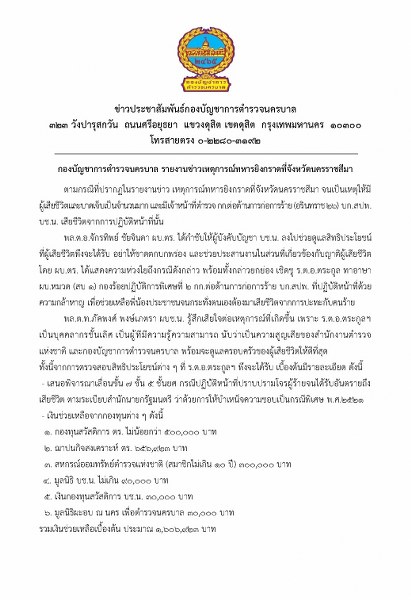 กองบัญชาการตำรวจนครบาล รายงานข่าวเหตุการณ์ทหารยิงกราดที่จังหวัดนครราชสีมา