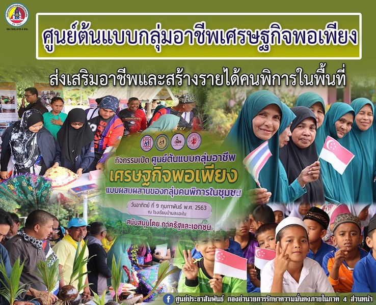 ชมรมคนพิการ และเครือข่ายสมาคมคนพิการภาคใต้ เปิดศูนย์ต้นแบบกลุ่มอาชีพเศรษฐกิจพอเพียง แบบผสมผสานเพื่อส่งเสริมอาชีพและสร้างรายได้คนพิการในพื้นที่