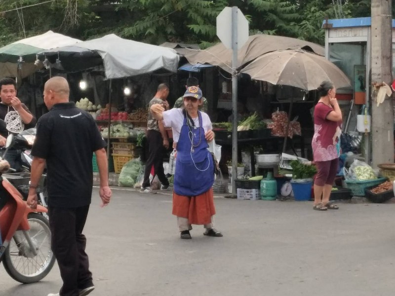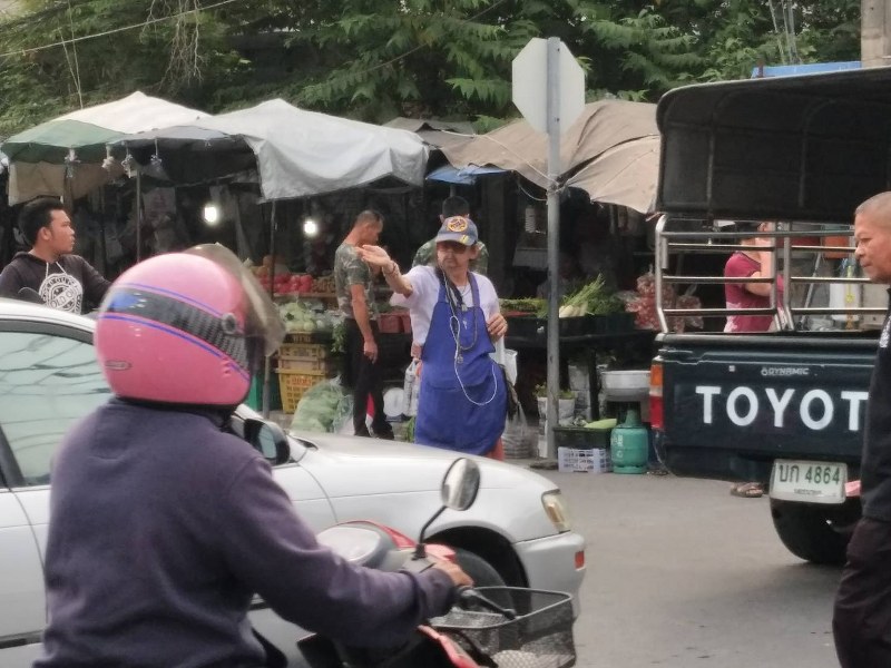 ฤาษีจิตอาสายืนโบกรถแยกท้ายตลาดสด ช่วงที่ผู้ปกครองมาส่งนักเรียนจะมีรถติดยาวทำให้การจราจรติดขัด เป็นการช่วยเจ้าหน้าที่ตำรวจได้อย่างดี