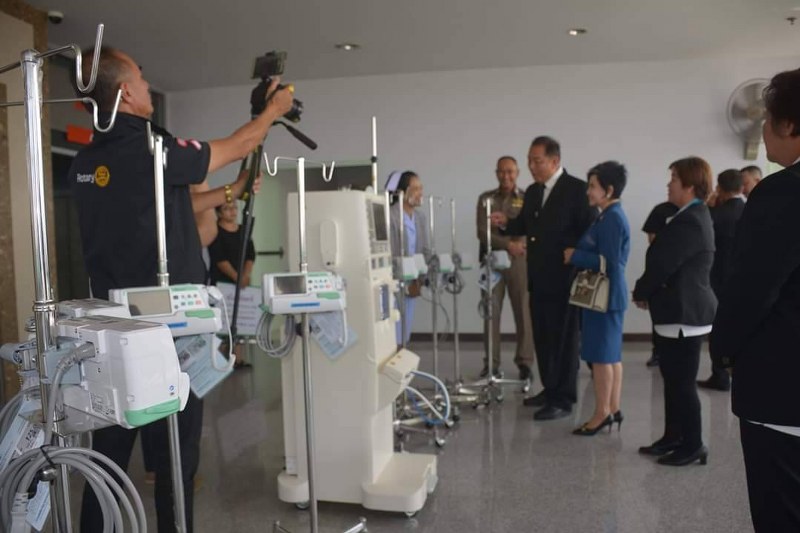โดย นย.มณีรัตน์ นวกุลกาญจนภาส นายกสโมสรโรตารีเมืองมุกดาหาร กล่าวว่าโครงการทุนสมทบ มูลนิธิโรตารี เพื่อมนุษยชาติ ได้รับการสนับสนุนจากมูลนิธิโรตารี Rotary Club of Hitachi D.2820 Japan, Rotary Club of Patumwan D.3350 Rotary Club of MuangMukdahan D.3340 Thailand ได้มามอบเครื่องฟอกไต จำนวน 1 เครื่อง และเครื่องควบคุมการให้สารละลายและโลหิต จำนวน 12 ชุด ให้กับโรงพยาบาลมุกดาหาร เพื่อช่วยเหลือเพื่อนมนุษย์ที่เจ็บป่วย มูลค่า 1.190,803 บาท