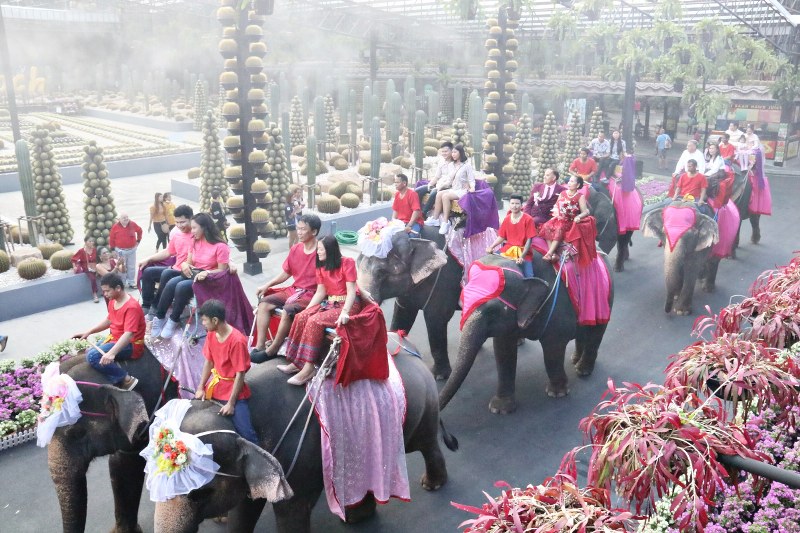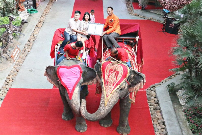 สวนนงนุชจัดใหญ่ สุดคึกคัก จดทะเบียนสมรสบนหลังช้าง สร้างสีสันวันวาเลนไทน์