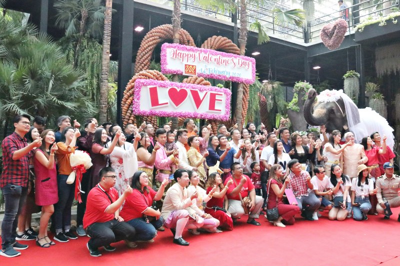 โดยมี นักท่องเที่ยวทั้งชาวไทย และชาวต่างชาติร่วมเป็นสักขีพยานรักกันเป็นจำนวนมาก สร้างสันวันแห่งความรักอย่างคึกคัก มีกิจกรรมโดยขบวนแห่ขันหมากช้าง จำนวน 14 เชือก พร้อมการแสดงชุดพิเศษ ลิลิตพระลอ สร้างความตื่นตา ตื่นใจให้กับคู่บ่าวสาวที่มาร่วมงาน นอกจากนี้นำช้างแสนรู้ ได้ออกมาโยนช่อดอกไม้ ให้กับผู้ที่มาร่วมกิจกรรมภายในงานได้แย่งชิงกันอย่างสนุกสนาน