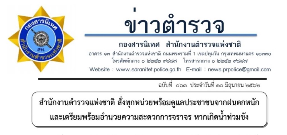 พร้อมกันนี้ ขอประชาสัมพันธ์แจ้งเตือนพี่น้องประชาชนเตรียมพร้อมรับมือและระมัดระวังอันตรายจากสถานการณ์ภัยทางธรรมชาติต่างๆ โดยให้ติดตามพยากรณ์อากาศและประกาศเตือนภัยอย่างใกล้ชิด เพื่อให้ประชาชนนั้นสามารถรับทราบถึงสถานการณ์ที่ทันต่อเหตุการณ์ รวมไปถึงการสร้างช่องทางการรับรู้ คำแนะนำแก่ประชาชนก่อนและขณะเกิดพายุฝนเพื่อเตรียมการรับมือได้อย่างมีประสิทธิภาพอีกด้วย และสำนักงานตำรวจแห่งชาติขอยื่นยันว่าพร้อมที่จะรับใช้พี่น้องประชาชนและเป็น”องค์กรบังคับใช้กฎหมาย ที่ประชาชนเชื่อมั่นและศรัทธา” ขอบคุณเรื่องแนะนำจาก