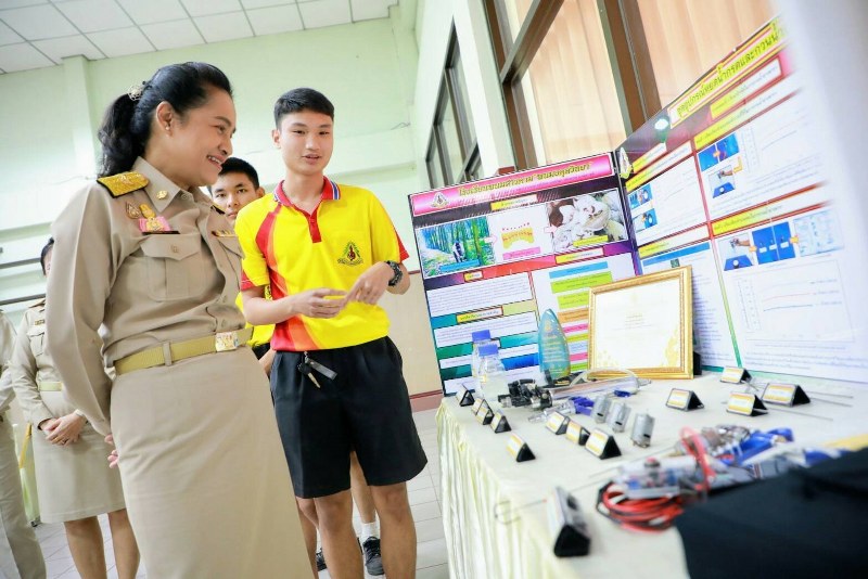 ในโอกาสนี้ รมช.ศึกษาธิการ ยังได้เยี่ยมชมนิทรรศการ และการนำเสนอผลงานวิชาการของนักเรียน อาทิ ชุดอุปกรณ์หยดน้ำและกวนน้ำยางพารา,บ้านเทียนอนุบาลแมลงหางหนีบ,ปอกเทียมห่อผลไม้จากวัสดุธรรมชาติ, เบ้ากุดจี่เทียมสำหรับเพาะปลูกเมล็ดพันธุ์พืช, ปัจจัยที่มีผลต่อจำนวนและเปอร์เซ็นต์ และการฟักออกเป็นตัวของไข่จิ้งหรีดทองคำ เป็นต้น โดยเฉพาะนวัตกรรมในโครงการ ชุดอุปกรณ์หยดน้ำและกวนน้ำยางพารา ของนายเทพพิทักษ์ สนธิ ซึ่งสามารถใช้งานได้จริง และเกิดประโยชน์ทางการเกษตร พร้อมทั้งได้รับรางวัลต่าง ๆ มากมาย อาทิ รางวัลชนะเลิศโครงการวิทยาศาสตร์ ระดับมัธยมศึกษาตอนปลาย ในงานสัปดาห์วิทยาศาสตร์ และรางวัลเหรียญทอง ในงานศิลปหัตถกรรมนักเรียนระดับชาติ ประจำปี 2562 เป็นต้น โดยได้มอบหมายให้นายศักดิ์เดช จุมณี ผู้อำนวยการโรงเรียนฯ ประสานการทำงานกับสำนักงานเขตพื้นที่การศึกษามัธยมศึกษา เขต 6 และหน่วยงานที่เกี่ยวข้อง อาทิ กระทรวงเกษตรและสหกรณ์ เพื่อต่อยอดนวัตกรรมและสิ่งประดิษฐ์ของนักเรียน สู่การจดอนุสิทธิบัตร ต่อไป นอกจากนี้ ยังได้เยี่ยมชมการจัดการเรียนการสอนในโครงการ English Programme และ Mini-English Programme ด้วย