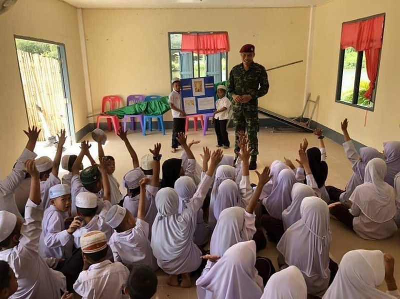 ทหารจากหน่วยรบพิเศษ เสริมความรู้ในห้องเรียนให้กับน้องๆนักเรียนโรงเรียนตาดีกา ผ่านกิจกรรมสันทนาการ แทรกเสริมอุดมการณ์ ความรักชาติ ศาสนา และพระมหากษัตริย์ ณ ศูนย์การอิสลามประจำมัสยิดเราฏอตุลฟาล จาบังตึงกูปึรตีวี บ.จาโต๊ะกู ม.5 ต.ตันหยงดาลอ อ.ยะหริ่ง จ.ปัตตานี งานนี้เด็กๆได้รับความรู้และสนุกสนานกันมากเลยทีเดียวล่ะครับ