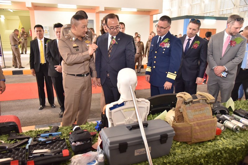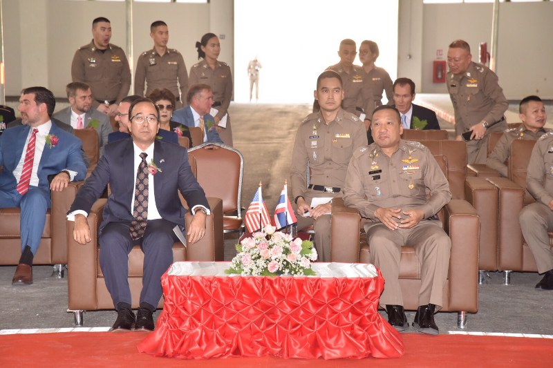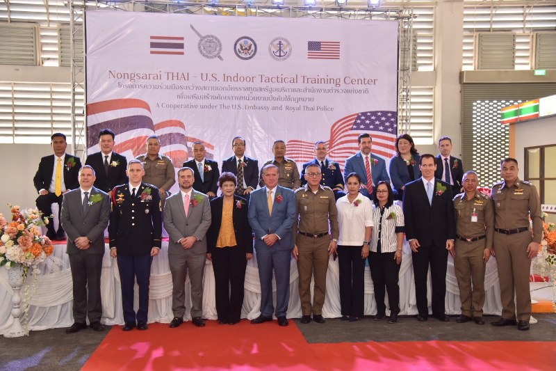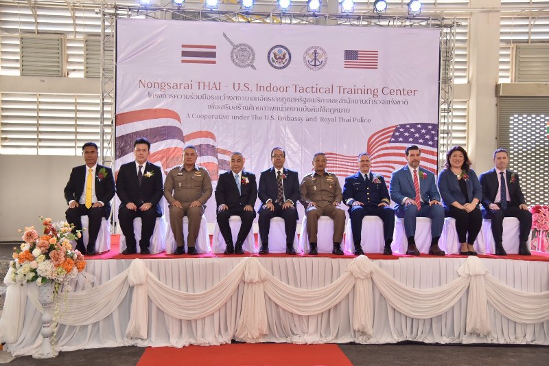 วันพฤหัสบดีที่ 20 กุมภาพันธ์ 2563 เวลา 11.00 น. ณ ศูนย์ฝึกยุทธวิธีตำรวจ ต.หนองสาหร่าย อ.ปากช่อง จ.นครราชสีมา : พล.ต.อ.สุชาติ ธีระสวัสดิ์ รอง ผบ.ตร. พร้อมด้วยนายไมเคิล ฮีท (Mr. Michael Heath) อัครราชทูตที่ปรึกษา สถานเอกอัครราชทูตสหรัฐ อเมริกา ประจำประเทศไทย และพลเรือตรี โรเบิร์ต เฮส์ (Rear Admiral Robert P.Hayes) ผู้อำนวยการกองกำลังร่วมภาคพื้นตะวันตกสหรัฐ (JIATF West) ร่วมเป็นประธานพิธีเปิดอาคารศูนย์ฝึกทางยุทธวิธีในร่มหนองสาหร่าย (ไทย-อเมริกา) Nongsarai THAI-U.S. Indoor Tactical Training Center โดยมีคณะผู้บังคับบัญชาของสำนักงานตำรวจแห่งชาติ และสถานเอกอัครทูตสหรัฐอเมริกา ประจำประเทศไทย เข้าร่วมเป็นเกียรติในพิธี