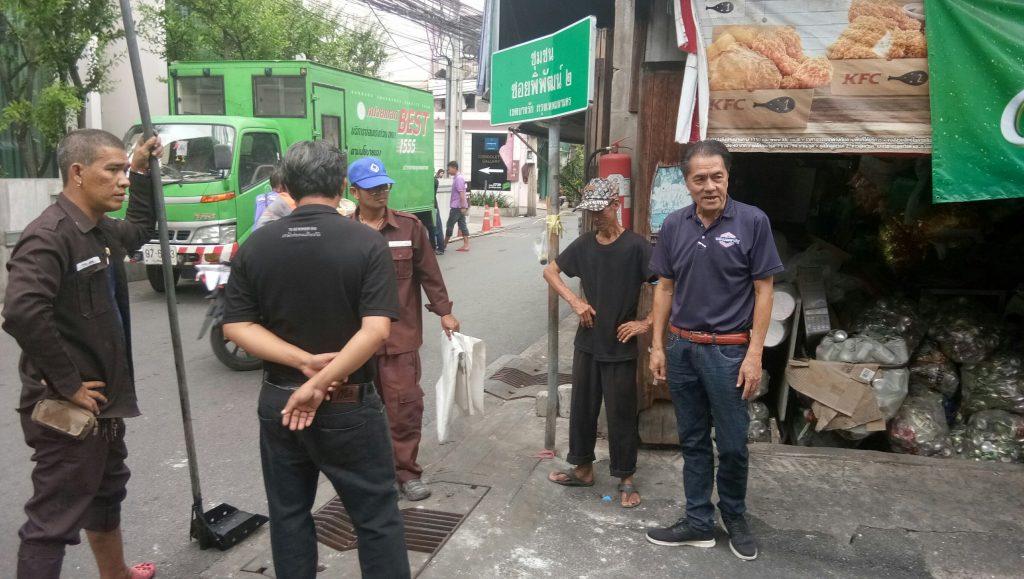 11 มิถุนายน 2562 สืบเนื่องจากชาวชุมชนซอยพิพัฒน์ 2 เขตบางรัก กรุงเทพ ได้ร้องเรียนไปยัง สส.ส้ม ดร.พัชรินทร์ ซำศิริพงษ์ พรรคพลังประชารัฐ เขต2 บางรัก ปทุมวัน สาทร ว่าให้ช่วยประสานงานกับทางสำนักงานเขต บางรักมาแก้ไขน้ำท่วมขังรอระบาย ในซอยชุมชนพิพัฒน์ 2 ด้วยนั้น จึงได้ส่งนายอนุสรณ์ นิติเมธีวัลลภ ผู้ช่วย สส.ลงพื้นที่เพื่อตรวจสอบสภาพของท่อพักระบายน้ำในชุมชน ซึ่งตั้งอยู่หลังธนาคารกรุงเทพ สำนักงานใหญ่ ปรากฎว่าพบสภาพของท่อในส่วนที่อยู่หน้าร้านอาหารครัวหนึ่งสองถูกปิดกั้นไปหนึ่งบ่อทำให้ไม่สามารถขุดลอกท่อได้สะดวกเป็นเกิดให้น้ำท่วมขังไม่สามารถผ่านได้ จากนั้นจึงได้เดินทางเข้าไปยังชุมชนพิพัฒน์ 2 เพื่อตรวจสอบท่อระบายน้ำทั้งหมดในชุมชน พบว่ามีการอุดตันของขยะมูลฝอยและคราบไขมันจับตัวเป็นก้อนกีดขวางทางน้ำที่ไหลลงสู่คูคลองด้านหลังชุมชน เบื้องต้นจึงได้ประสานงานให้ทางฝ่ายโยธาของเขตบางรัก มาขุดลอกท่อเพื่อบรรเทาความเดือดร้อน ส่วนการแก้ไขในระยะยาวคงต้องน้ำเรื่องนี้ประสานกับทางสำนักงานเขตบางรัก เพื่อหามาตรการบูรณะแก้ไขทั้งระบบอีกครั้งหนึ่ง นายอนุสรณ์ ผู้ช่วย สส.กล่าวว่า ” สส.ส้ม ดร.พัชรินทร์ ซำศิริพงษ์ มีความเป็นห่วงพี่น้องประชาชน ในเขตบางรัก ปทุมวัน สาทร ในช่วงฤดูฝนนี้เป็นอย่างมากเพราะเมื่อฝนตกน้ำที่รอระบายอาจทำให้การสัญจรของพี่น้องประชาชนมีความยากลำบากในการเดินทาง จึงให้ผู้ช่วย สส. ในเขตพื้นที่ทุกคน ออกรับทราบปัญหาและรีบหาทางดำเนินการช่วยเหลือแก้ไขโดยด่วน ”
