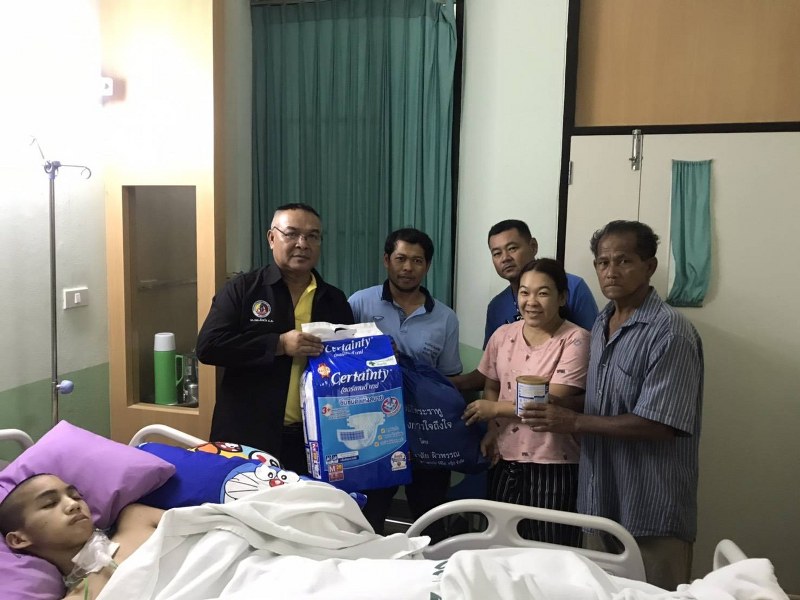หลังจากนั้น ได้ร่วมกันมอบถุงยังชีพ, แพมเพิส, นม และอาหารเหลวสำหรับคนไข้ ให้กับเด็กชายนิติภูมิ ศรีอินทร์ ณ โรงพยาบาลสามร้อยยอด อำเภอสามร้อยยอด จังหวัดประจวบคีรีขันธ์