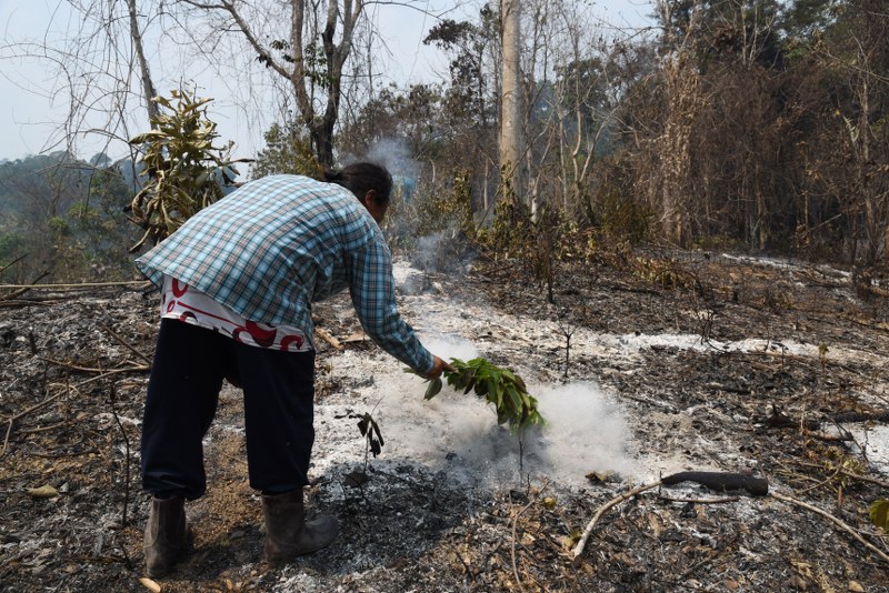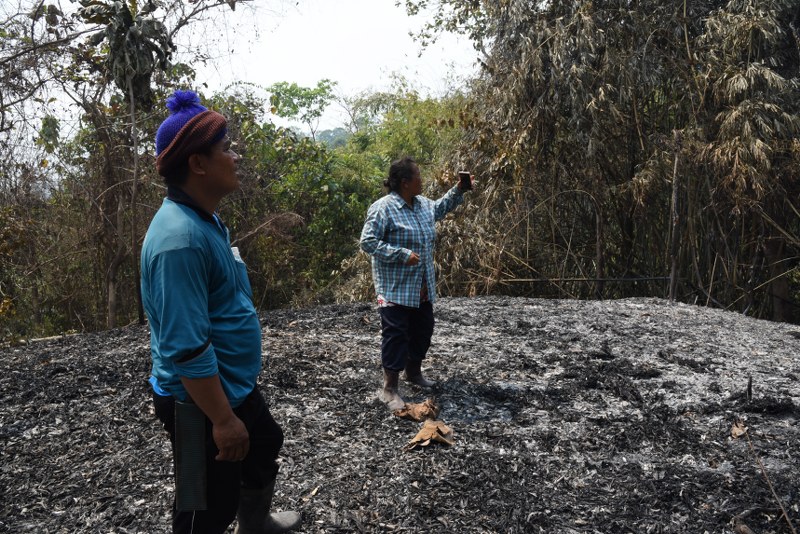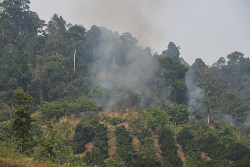 หลังจากที่ควบคุมไฟป่าที่ลุกไหม้บนยอดเนินเขาหยุดได้แล้ว ขณะพักผ่อนเพื่อเฝ้าระวัง ไฟป่าที่คลุกกรุ่นบนช่องเขาขาดได้ประทุขึ้นมาอีกครั้ง เนื่องจากมีลมกรรโชกและบริเวณโดยรอบเป็นพื้นที่แห้ง มีเศษใบไม้ และใบไผ่ที่เป็นเชื้อเพลิงอย่างดี เพลิงประทุรุนแรงอยู่ช่วงกลางเขาใกล้สวนทุเรียน เจ้าหน้าที่ป่าไม้ ชุดควบคุมไฟป่าเขาสอยดาว ชาวบ้านจิตอาสากว่า 30 คนได้นำอุปกรณ์ดับไฟ พร้อมน้ำขึ้นไปจุดที่ไฟป่าประทุขึ้นอีก พร้อมสร้างแนวกันไฟไม่ให้ไฟป่าลุกลามลงมาในพื้นที่สวนผลไม้ ขณะที่เนินเขาหยุดหลังไฟป่าสงบลงแล้วชาวบ้านได้พบร่องรอยของช้างป่าเดินออกจากช่องเขา ไปยังพื้นที่ด้านล่างซึ่งช้างป่าอาจหลบภัยของไฟป่าและขาดแหล่งอาหารขอให้ชาวบ้านที่อยู่ใกล้บริเวณดังกล่าวเพิ่มความระมัดระวังช้างป่าด้วย