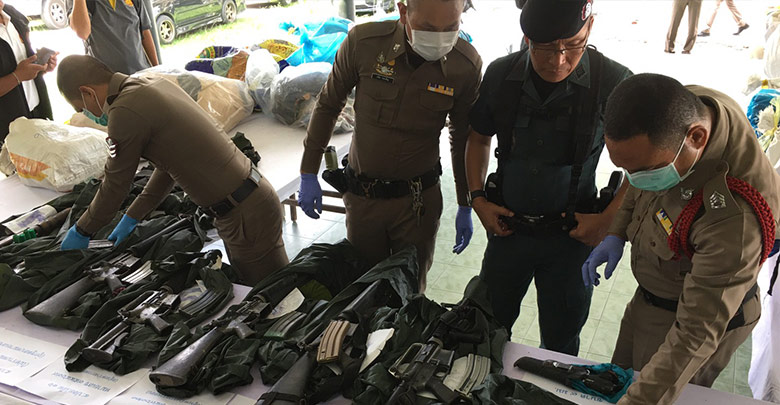 โดยเจ้าหน้าที่ได้นำวัตถุพยานต่างๆ ที่ได้ตรวจยึดจากกลุ่มผู้ก่อเหตุรุนแรง มาวางแสดงในการแถลงข่าวในครั้งนี้ อาทิ อาวุธปืน 10 กระบอก วงจรจุดชนวนระเบิด หรือ ไอ.ซี. ไทม์เมอร์ ลูกเหล็กทรงกลม หรือสะเก็ดระเบิด ดินระเบิด ภาชนะบรรจุระเบิด และอุปกรณ์สนาม รวม 27 กระสอบ ซึ่งของกลางทั้งหมดเจ้าหน้าที่จะส่งไปตรวจคราบลายนิ้วมือแฝงและ ดี.เอ็น.เอ. เพื่อเชื่อมโยงกับกลุ่มคนร้าย ที่เคยใช้นำไปก่อเหตุที่ใดบ้าง