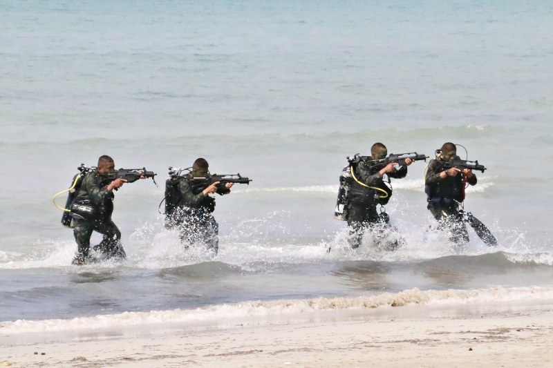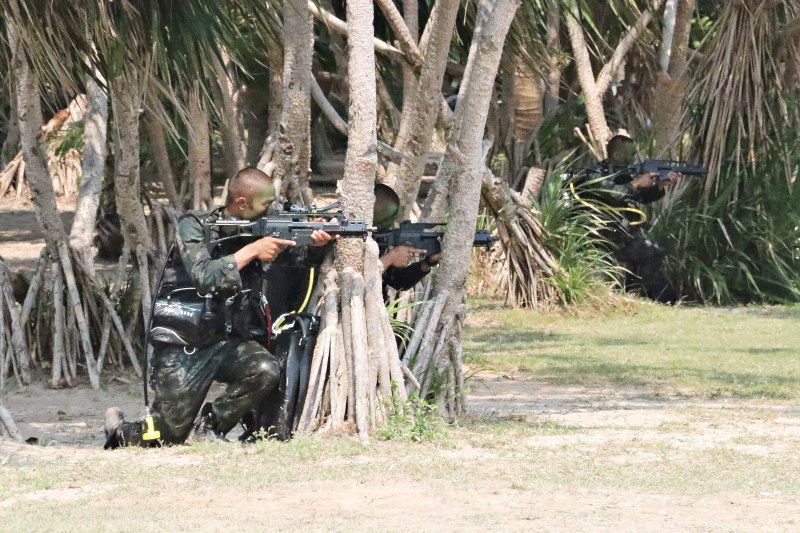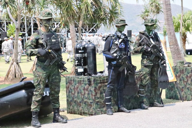 โดยวันนี้ได้มีการฝึกสาธิต การปฏิบัติการโจมตีโฉบฉวยสะเทินน้ำสะเทินบกที่จัดขึ้นในวันนี้ ได้มีการนำนโยบายของผู้บัญชาการทหารเรือ มาเข้าสู่กระบวนการในการสาธิต ซึ่งมีการสมมุติสถานการณ์ ในการส่งส่วนล่วงหน้าทำการแทรกซึมทางอากาศลงสู่พื้นที่เป้าหมายเพื่อทำการหาข่าว เฝ้าตรวจ และเตรียมพื้นที่ในการนำกำลังหลักเข้าโจมตีที่หมาย จากนั้น หน่วยโจมตีโฉบฉวยสะเทินน้ำสะเทินบก เข้าสู่พื้นที่ปฏิบัติการด้วยเรือระบายพล เรือยาง รถสะเทินน้ำสะเทินบก เพื่อโจมตีที่หมาย โดยระหว่างการปฏิบัติการโจมตีโฉบฉวยสะเทินน้ำสะเทินบกต่อที่หมายนั้น หน่วยปืนต่อสู้อากาศยานและรักษาฝั่ง จะทำการยิงต่อต้านการโจมตีโฉบฉวยสะเทินน้ำสะเทินบก โดยกำลังที่จัดเข้าร่วมในการสาธิตในวันนี้ ประกอบด้วย เครื่องบินลาดตระเวนแบบดอร์เนีย เฮลิคอปเตอร์ปราบเรือดำน้ำ แบบ S – 70 B เรือหลวงกันตัง รถสะเทินน้ำสะเทินบก ชุดลาดตระเวนสะเทินน้ำสะเทินบก ชุดโดดร่ม ชุดดำน้ำทางยุทธวิธี ปืนต่อสู้อากาศยานและรักษาฝั่ง