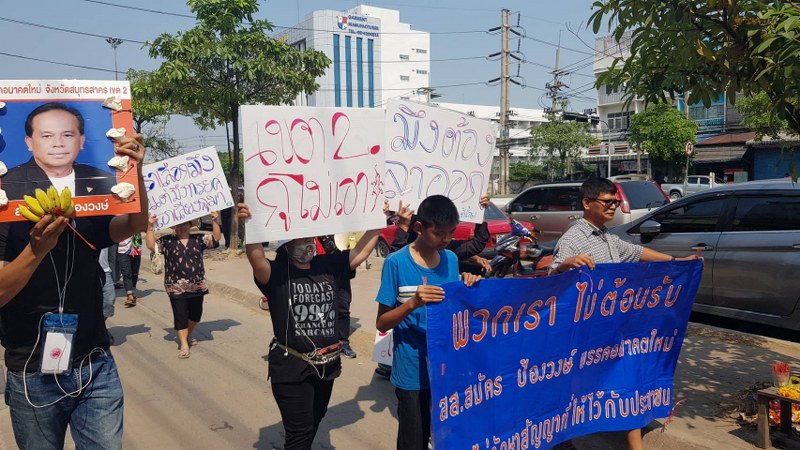 พี่น้องประชาชนชาวอ้อมน้อย กระทุ่มแบน รวมตัว ออกมาขับไล่ ส.ส. งูเห่า เขต 2 จ.สมุทรสาคร ได้ย่ำยีหัวใจและไม่เห็นหัวประชาชนที่ลงคะแนนเสียงให้