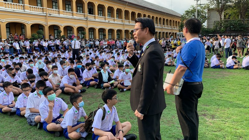 เพราะฉะนั้นสถานการณ์ของเราในขณะนี้ถือว่าปลอดภัย 100% ขอให้พวกเราทุกท่านสบาย ใจได้ในส่วนของการป้องกันไข้หวัดโควิด-19 ที่เราเป็นห่วงกันอยู่ ส่วนการสอบวันนี้ ก็เชื่อว่าทุกคนคงมีการเตรียมตัวมาอย่างน้อย 2 -3 ปี บางคนเตรียมมาถึง 6 ปีก็มี ขอให้ใช้ความรู้ความสามารถของตนเองอย่างเต็มที่ การสอบใดๆ ก็ตาม บางคนอาจจะไปได้ยินข่าวลือว่าคนนั้นช่วยได้คนนี้ช่วยได้ ตนขอรับรองด้วยเกียรติของโรงเรียนสวนกุหลาบฯ ว่าไม่มีประเด็นนี้เกิดขึ้นอย่างแน่นอน ทุกคนที่เข้ามาเรียนต้องเป็นความสามารถของนักเรียนด้วยตัวเองทั้งสิ้น ขอให้คนที่เตรียมตัวมาพร้อมและมีความพร้อมมากที่สุดเข้าสู่ห้องเรียนของเราได้