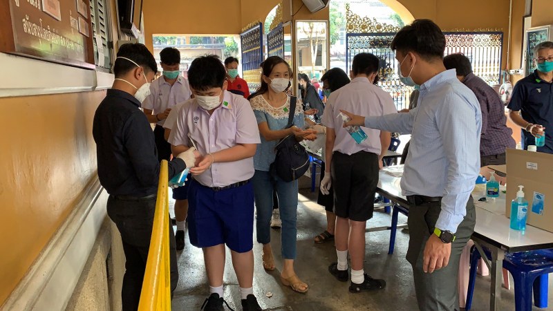 -กำหนดจุดคัดกรอง บริเวณประตูทางเข้าโรงเรียน