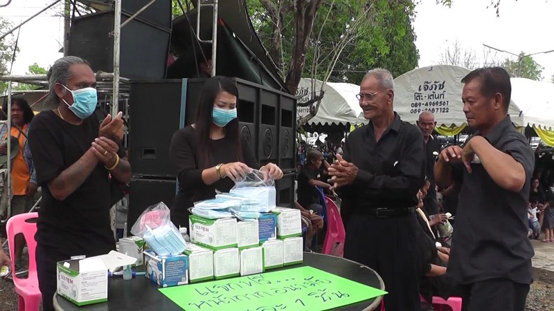 ทั้งนี้ บรรยากาศภายในงาน ได้มีผู้ใจบุญ ผู้มีจิตศรัทธา ต่างนำอาหาร ผลไม้ เครื่องดื่ม น้ำดื่ม มาจัดตั้งโรงทาน ไว้ให้บริการแก่ผู้ที่มาร่วมงาน ได้ดื่มกิน และรับประทานอาหารอย่างอิ่มท้อง เช่นเดียวกับ “โรงทานหน้ากากอนามัย” ของอาจารย์อ๊อด หรือ นายอำนาจ โพธินอก เจ้าของสำนักอาจารย์อ๊อด หมู่ 1 ตำบลพุเตย อำเภอวิเชียร จังหวัดเพชรบูรณ์ ก็ได้ทำการจัดซื้อ “หน้ากากอนามัย” อย่างดี ความหนา 4 ชั้น จำนวนกว่า 1,000 ชิ้น มาร่วมแจกจ่ายฟรี ให้แก่ผู้ที่มาร่วมงานคนละ 1 ชิ้น พร้อมบริการเจลแอลกอฮอร์ล้างมือ เพื่อเป็นการป้องกันและควบคุมโรค COVID – 19 ซึ่งเป็นโรคติดต่ออันตรายอันดับที่ 14 และเป็นภัยต่อสุขภาพของประชาชนทั่วโลกในขณะนี้ โดยพบว่าได้รับความสนใจเป็นอย่างมาก มีผู้เข้าแถวขอรับหน้ากากอนามัย จนแจกหมดเกลี้ยง 1,000 ชิ้น ภายในเวลาอันรวดเร็ว