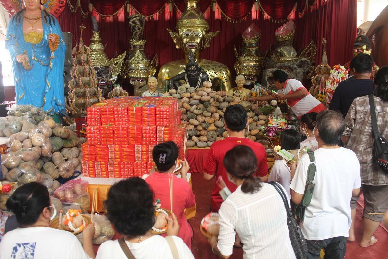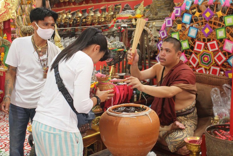 บรรยากาศตลอดทั้งวันที่อาศรมฤๅษีเณรมีประชาชนแวะเวียนเข้ามากราบสิ่งศักดิ์สิทธิ์ภายในอาศรมทั้ง กุมารเจ้าสัวเฮง พ่อปู่ฤๅษีพรหมเมศร์ บันดาลโชคลาภ และมาแก้บนกุมารเจ้าสัวเฮง หลังจากที่มากราบไหว้บนบานขอให้มีโชคลาภ กระทั่งสมหวังโชคลาภตามที่ขอ โดยได้นำ น้ำแดงมาถวายกุมารเจ้าสัวเฮง และฟักทองมาถวาย พ่อปู่ฤๅษีพรหมเมศร์ เป็นจำนวนมาก อีกทั้งยังเข้าร่วมพิธีถวายข้าวสารเพื่ออุทิศส่วนบุญส่วนกุศลให้เจ้ากรรมนายเวรและพิธียกตะข้องเพื่อจะได้ทำมาค้าคล่องและมีความคล่องตัวในหน้าทีการงานไม่ติดขัดใดๆ และยังส่องอ่างน้ำมนต์ที่ศาลาบุญช่วยหน้าพ่อปู่ฤษีพรหมเมศเพื่อหวังโชคลาภ