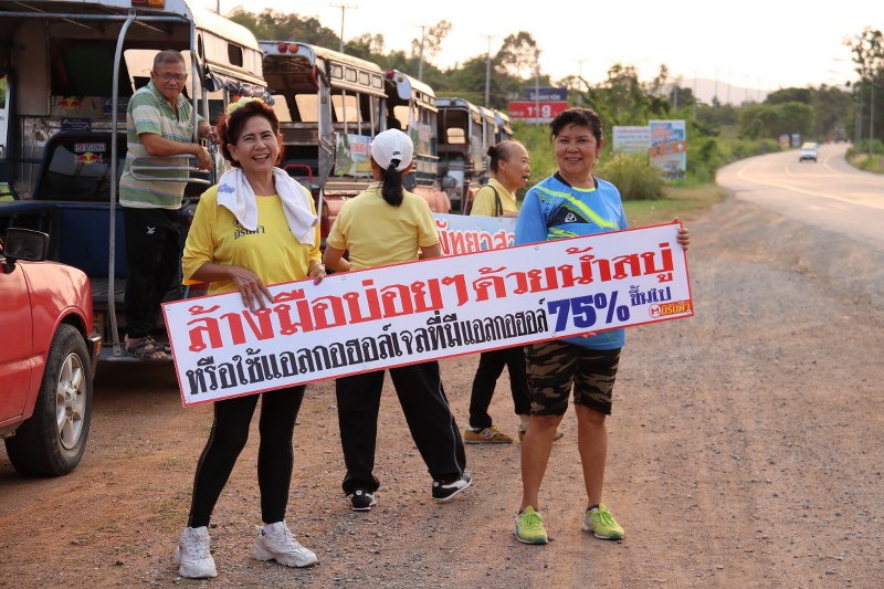 หลังจากนั้นได้ร่วมกันถือป้าย เราคนไทยด้วยกันต้องช่วยกัน หน้ากากอนามัยเราไม่เจ็บไม่ไปในที่เสี่ยงไม่จำเป็นต้องใช้, ข้อมูลดีๆ จากคุณหมอ น.ต.หญิง กฐวี บุญตานนท์ คุณหมอแห่งกองทัพเรือไทย ,เชื้อโควิด 19 ไม่ได้ลอยในอากาศ อย่าไปกลัว สละหน้ากากอนามัยไปให้คุณหมอคุณพยาบาลหรือผู้ที่อยู่ในกลุ่มเสี่ยง อย่ากักตุน…เป็นต้น พร้อมแจกใบปลิว ที่มีข้อความกล่าวถึง เชื้อไวรัส 19 ไม่น่ากลัวอย่างที่คิด..เป็นข้อความสั้นๆ ให้เข้าใจอย่างง่ายๆ ขึ้นรถขยายเสียงออกประกาศประชาสัมพันธ์ ไปตามถนนทั่วทั้งอำเภอสัตหีบ ซึ่งได้รับความร่วมมือจากผู้ที่ขับรถสัญจรผ่านไปมาอย่างดียิ่ง