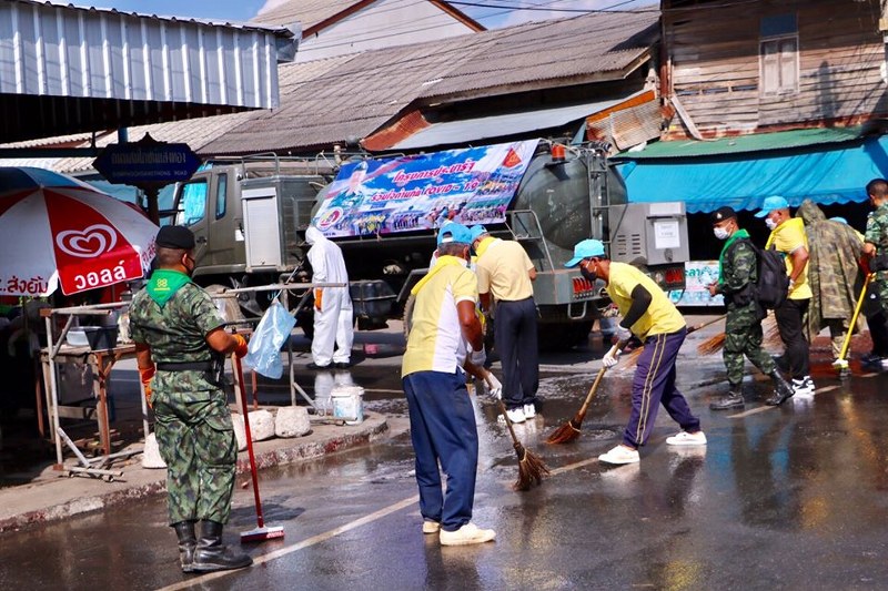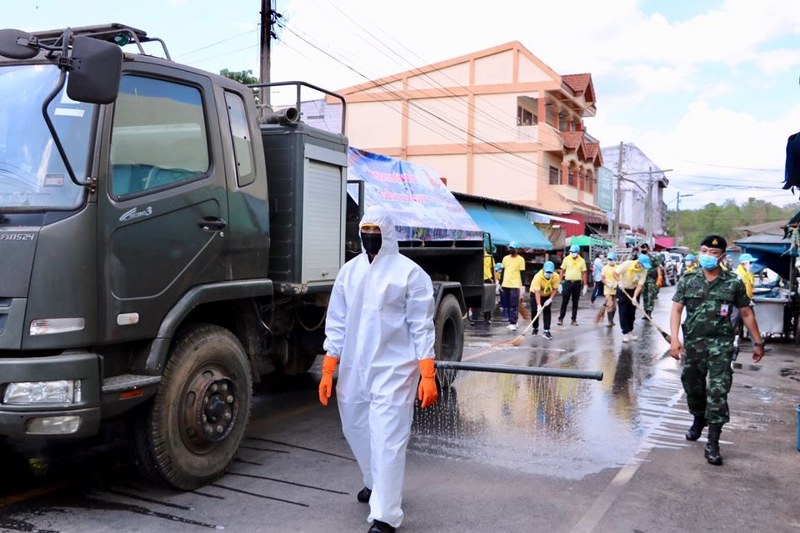 หน่วยเฉพาะกิจสงขลา ร่วมกับจังหวัดสงขลา จัดกิจกรรมทำความสะอาดตลาดสดเขตเทศบาลอำเภอสะบ้าย้อยตามแผนปฏิบัติการประชารัฐร่วมใจต้านโควิด – 19 เพื่อป้องกันและยับยั้งการแพร่เชื้อของโรค