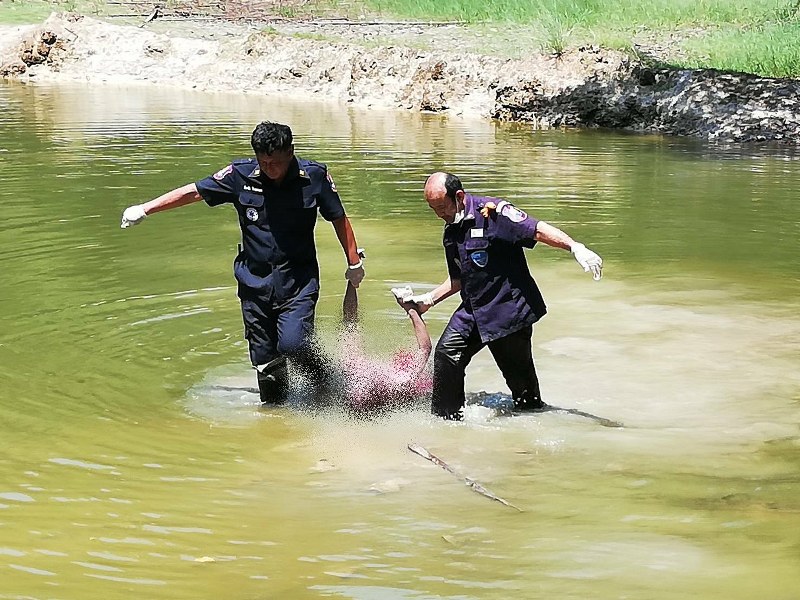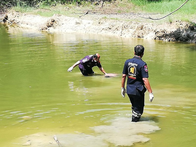 ชาวบ้านออกทอดแหหาปลาในบ่อดินร้างตั้งแต่เย็นวาน ญาติๆ ออกตามหาพบอีกที เป็นศพลอยน้ำอยู่ที่บ่อดิน ญาติรีบโทรแจ้งเจ้าหน้าที่