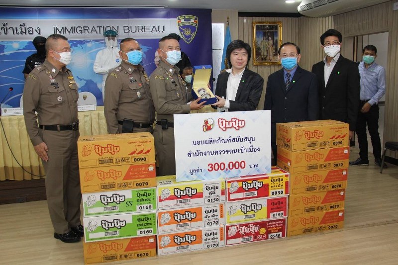 และจาก คุณสมชาย เอื้ออมรสุข พร้อมคณะมอบเก้าอี้ จำนวน 500 ตัว, ถุงมือยาง 400 กล่อง และเจลแอลกอฮอล์ จำนวน 1,200 ขวด เพื่อสนับสนุนการปฏิบัติงานของสำนักงานตรวจคนเข้าเมือง