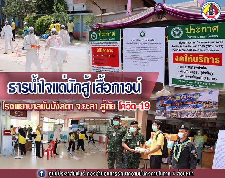 กอ.รมน.ภาค 4 ส่วนหน้า ส่งธารน้ำใจแด่นักสู้เสื้อกาวน์ โรงพยาบาลบันนังสตา สู้ภัยโควิด-19