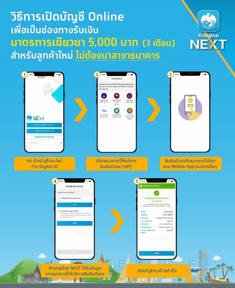 วิธีการเปิดบัญชี Online เพื่อเป็นช่องทางรับเงิน มาตรการเยียวยา 5,000 บาท (3 เดือน) สำหรับลูกค้าใหม่ ไม่ต้องมาสาขาธนาคาร