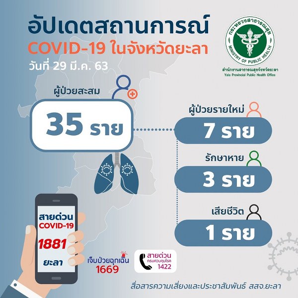 ยืนยันยอดผู้ป่วย COVID-19 ในจังหวัดยะลา ประจำวันที่ 29 มี.ค. 63