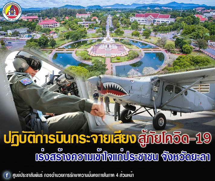 ปฏิบัติการบินกระจายเสียงเฉพาะกิจพิเศษ วันที่ 2 พื้นที่ยะลา เร่งสร้างความเข้าใจสู้โควิด-19 แก่ประชาชน