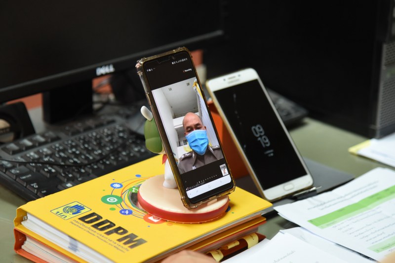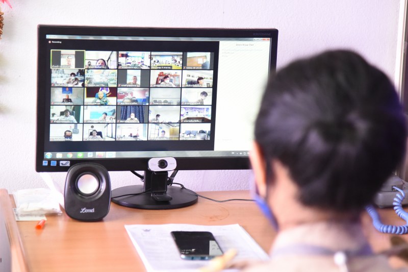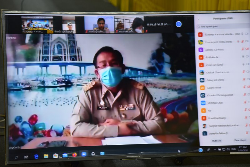 จ.จันทบุรี ประชุมหัวหน้าส่วน Social distancing ผ่านโปรมแกรม Zoom Cloud Meetings รักษาระยะปลอดภัย ป้องกันโควิด-19 แยกหัวหน้าส่วนนั่งประชุมที่ห้องทำงานของแต่ละคน