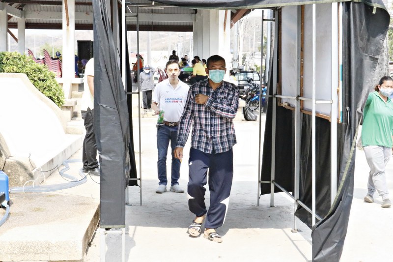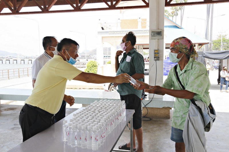 เมืองสัตหีบแจกเจลล้างมือให้พี่น้องประชาชน เร่งติดตั้งอุโมงค์พ่นละอองน้ำยาฆ่าเชื้อ