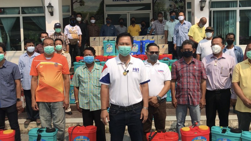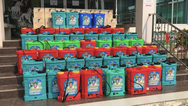 นนทบุรี สส.นนทบุรีเขต 6 มอบเครื่องฉีดพ่น/ น้ำยาฆ่าเชื้อ 3 พันลิตร ให้กับผู้นำชุมชน 11 ตำบล ป้องกันไวรัสโควิด-19