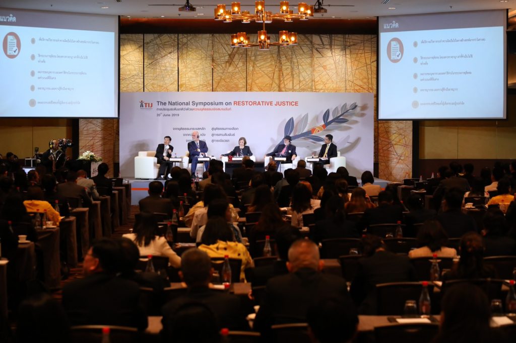 วันนี้ (20 มิถุนายน 2562) ศาสตราจารย์ ดร. สุรศักดิ์ ลิขสิทธิ์วัฒนกุล ประธานกรรมการบริหาร สถาบันเพื่อการยุติธรรมแห่งประเทศไทย เป็นประธานเปิดการประชุมระดับชาติว่าด้วยความยุติธรรมเชิงสมานท์ฉัน เพื่อนำเสนอนวัตกรรมด้านความยุติธรรม และร่วมแก้ปัญหาระบบยุติธรรมไทย สร้างสังคมสันติสุข ผ่านแนวคิดหลักความยุติธรรมเชิงสมานฉันท์ โดยมีนายพยนต์ สินธุนาวา รองอธิบดีกรมคุมประพฤติ พร้อมด้วยคณะผู้บริหาร และเจ้าหน้าที่ เข้าร่วมการประชุมดังกล่าว ณ โรงแรมแลนด์มาร์ค กรุงเทพมหานคร