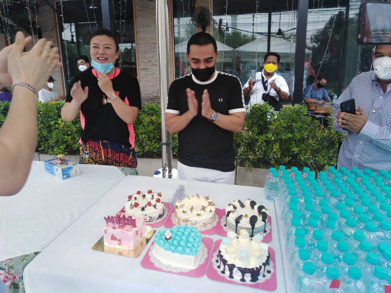 พร้อมกับวันนี้ได้มีทนายศรชัย เชี่ยวชาญ ทนายความได้ร่วมนำเค้กวันเกิดมาแจกเนื่องจากวันนี้เป็นวันคล้ายวันเกิดของตน ซึ่งก่อนรับได้เข้าแถวโดยระยะห่างกัน 1 เมตรพร้อมมีการคัดกรองผู้ที่มารับข้าวกล่องในครั้งนี้พร้อมแจกแมสฟรี