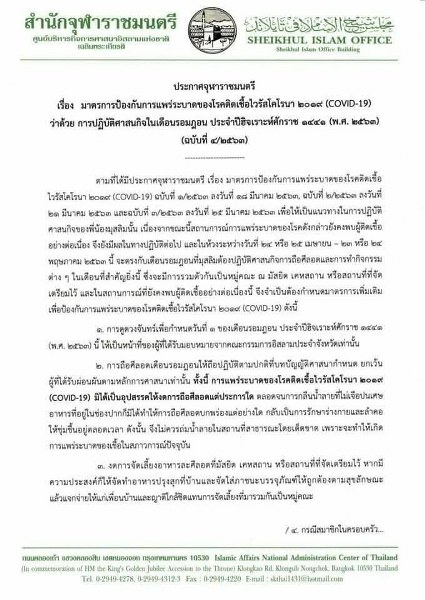 ประกาศ‼️ จุฬาราชมนตรี เรื่อง มาตรการป้องกันการแพร่ระบาดของโรคติตเชื้อไวรัสโคโรนา 2019 (COVID-19) ว่าด้วย การปฏิบัติศาสนกิจในเดือนรอมฎอน ประจำปีฮิจเราะห์ศักราช 1443 (พ.ศ. 2563)